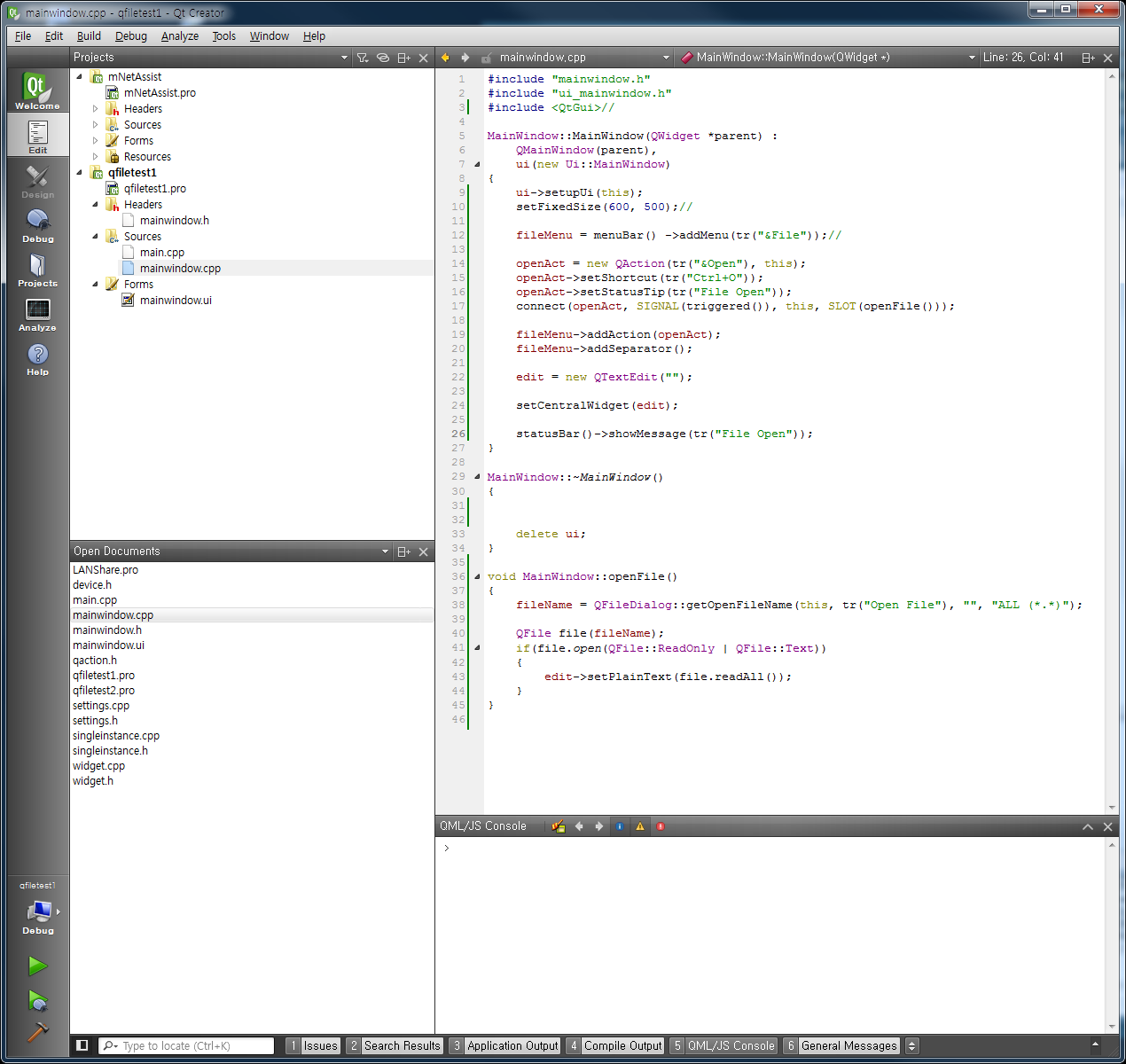 fileMenu = menuBar() ->addMenu(tr("&File"));//