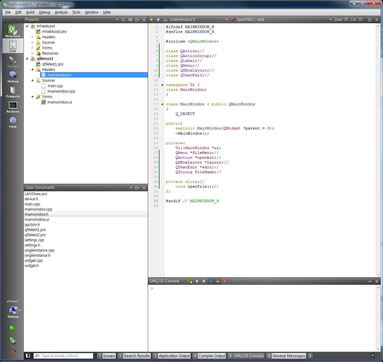 connect(openAct, SIGNAL(triggered()), this, SLOT(openFile()));