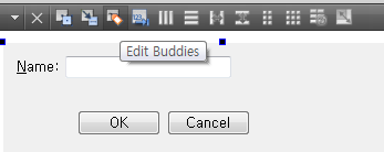 버디는 입력할 수 있는 부분은 없지만 포커스가 맞춰지면 자동으로 관련된 컨트롤로 포커스가 자동으로 전달되는 관계를 말합니다. 위 예제에서 라벨 컨트롤인 Name: 에 Focus 가 간다면 오른쪽 Line Edit 쪽으로 가게끔 하는 방법을 알아 봅시다.