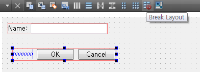 작성된 레이아웃은 삭제(Delete) 시 그룹 처럼 하위 컨트롤들도 삭제가 되므로 삭제를 하지 않고 Break Layout 을 선택하여 레이아웃만을 제거할 수 있습니다.