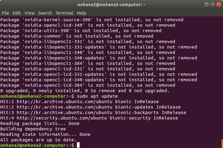 위 명령어 3줄을 입력하게 되면 그래픽카드 드라이버가 업데이트되게 됩니다. cuda로 설치한 경우 업데이트가 진행될 것입니다.