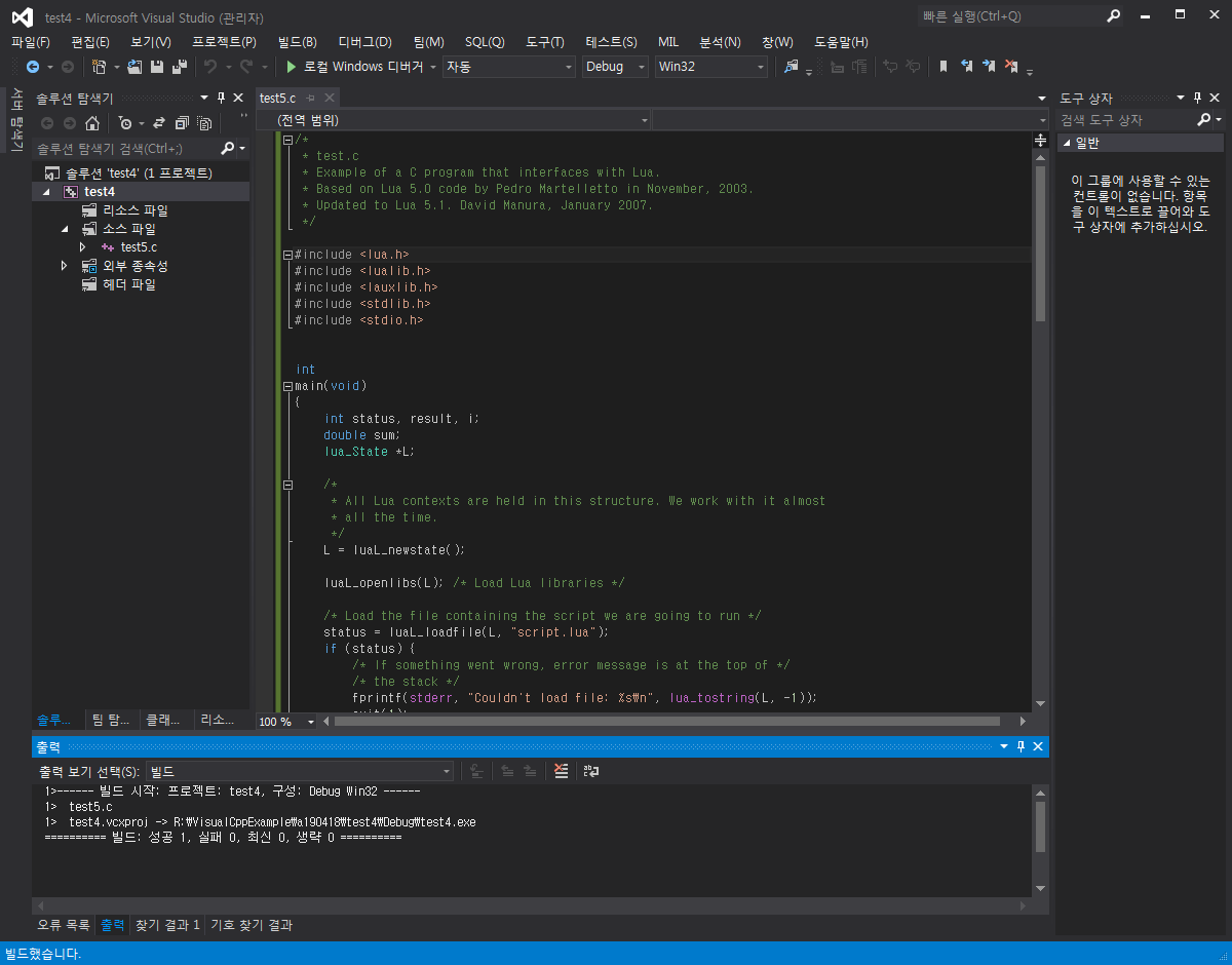 3. C언어에서 Lua 호출하는 예제를 만든다.