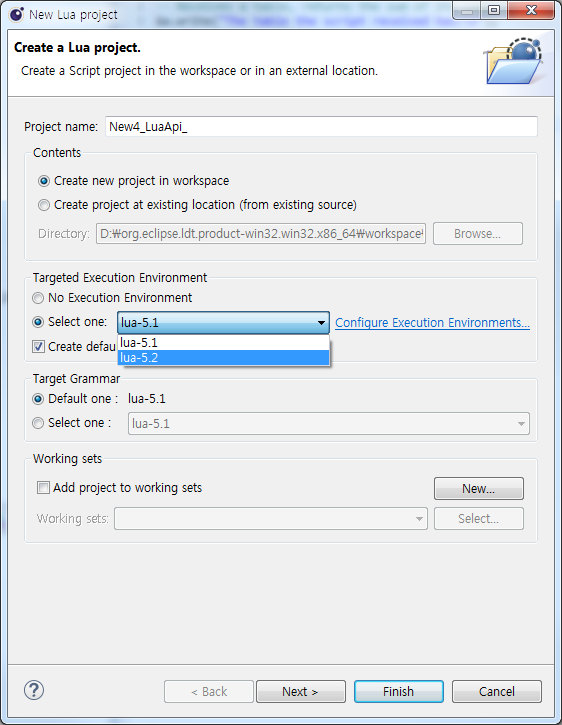 Lua 편집 툴은 Eclipse 기반의 Lua Development Tools를 활용