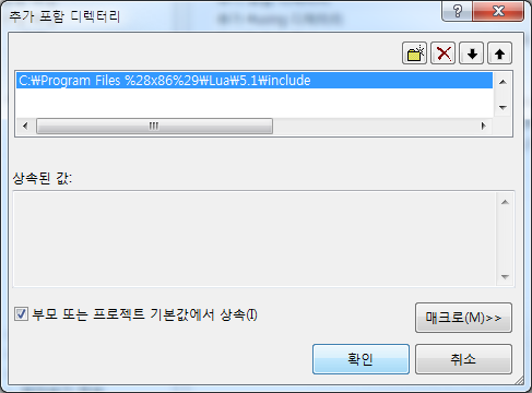 4. Lua 헤더 파일을 include 한다. 경로는 아래 그림 참고.