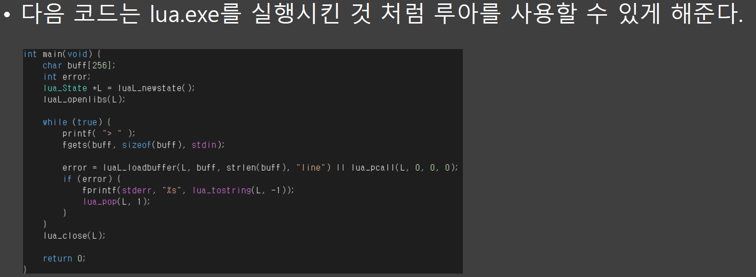2) Lua 스크립트를 C언어에서 불러오는 소스코드