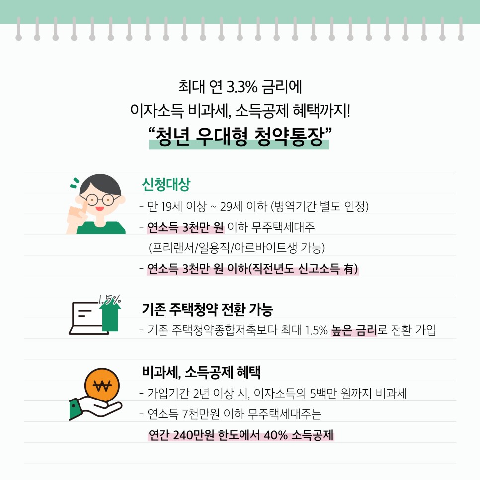 최대 연 3.3% 금리에 이자소득 비과세, 소득공제 혜택까지