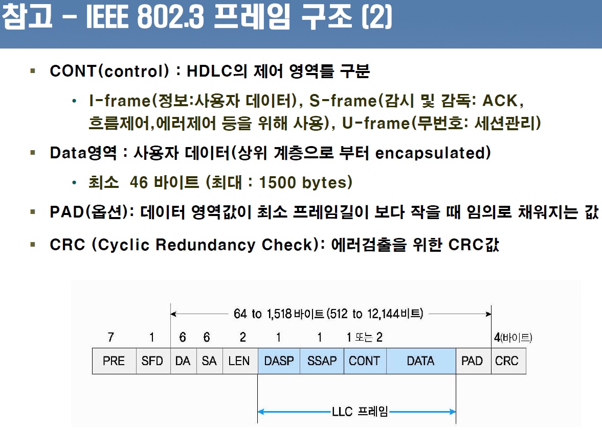 ethernet은 네트워크 장치마다 부여하는 mac 주소를 가지고 실제 물리 회선을 통해 주고 프레임을 주고 받는 것을 담당합니다. CSMA/CD(Carrier Sense Multiple Access with Collision Detection) 논문이 나오면서 네트워크를 같이 사용하여 발생하는 충돌을 회피하는 방법을 규정하고 있습니다. 논문에 따르면 충돌을 방지하기 위해 최소 프레임 길이를 64비트로 정의하였습니다.